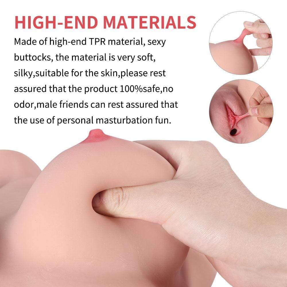 As you can see intuitively, the alluring tits, slim waist, spank-able butts, and of course double channels of bumpy inner designs......You'll be happy to spend every day and night with her! Up top, you are given the chance to prop your hands on the pair of meaty breasts, licking and biting those pink nipples, or getting your desirous dick pinched between the pretty cleavage. And below, both the luscious pussy and tight ass feature tons of rich nodes, ribs, and threads. With a lot of lubricant, the smooth slide will help you feel the wonderful stimulation inside as you thrust. You can also choose to enjoy by her legs for fresh fun. Go ahead and get all your girl plans realized!