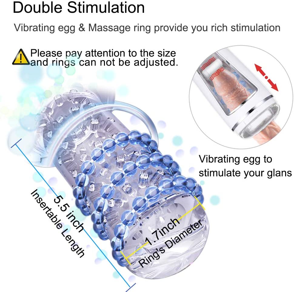 • Soft and transparent TPE sleeves, 3D particles strongly tease and rub your glans and penis.