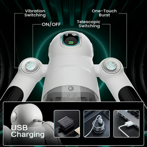 Unlike traditional sex toy, 7 telescopic with a long range telescoping and more faster frequency, allowing you to feel the whole jerking friction and relieving every inch of your itch. In addition, it offers 12 squeezing vibration, as if you were in the midst of real piston passion, able to interact with the rhythm of your thrusts and clamp down on your swollen parts. During use, you can clearly feel its orgasmic tremors as if you are experiencing real sex.This masturbator also has a one-touch brust up to 300/mins, boosting your pleasure and help you enjoy the orgasmic outburst of pleasure instantly.Built-in dual vibration motors on the top and bottom, the vibration in the center seems like a sweet love hole squeezing passionately, while the deeper bottom is like a flower heart squeeze tightly, do all heart to aid you orgasm.In addition, 5.12 in long channel that is divided into 4-segment textures, and a 1.38 in telescopic length to satisfy your many different jerking pleasures at once.The highly elastic and thickened silicone inner provides fully friction to sooth every inch of your buddy.A perspective window and LCD screen, you can clearly see she engulfing you completely, perfectly accommodating your swelling and allowing you to explode with passion, with everything under your control.