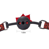 Want to spend a great anniversary with your partner? Or want to explore novel bedroom games? This sex toy provides you with new ways to play for fresh happiness.The gag is connected a sexy lace strap that keeps it perfectly in place. And it closes with a hardy metal buckle, which can be adjusted to fit most sizes. The main part is made of silicone, which is non-toxic and harmless, it will never harm your mouth and skin. Moreover, the three holes on the back allow you to breathe unhindered and give way to saliva dripping. No matter how dignified and reserved you usually are, as long as you wear it, watching the saliva flows slowly along the corners of your mouth, there is nothing but shameful pleasure. Spice up your SM games!